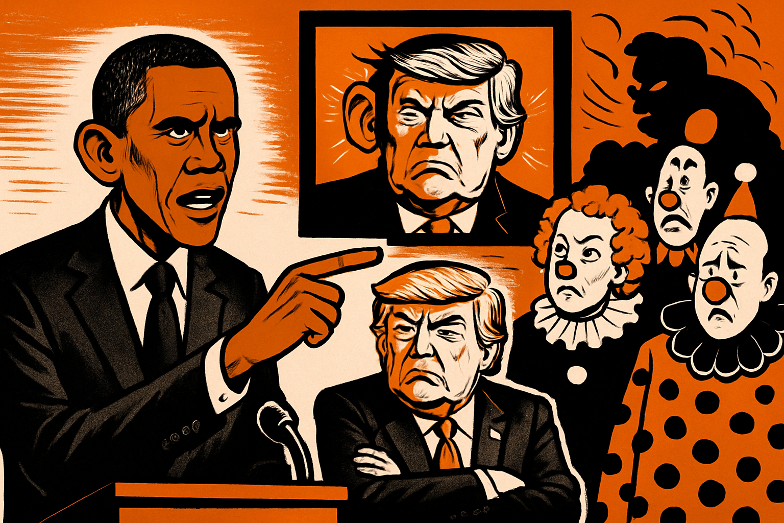 L'ancien président américain Barack Obama a critiqué vivement le comportement de Donald Trump et de la classe politique américaine suite à la diffusion d'une vidéo raciste le représentant en singe. Obama a qualifié ce spectacle de "clowns" et a dénoncé les politiques anti-immigration de l'administration actuelle.
