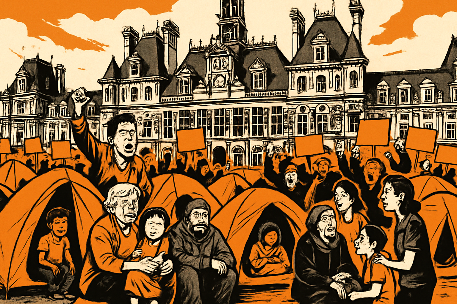 Un campement de familles mal logées devant l’Hôtel de ville de Paris