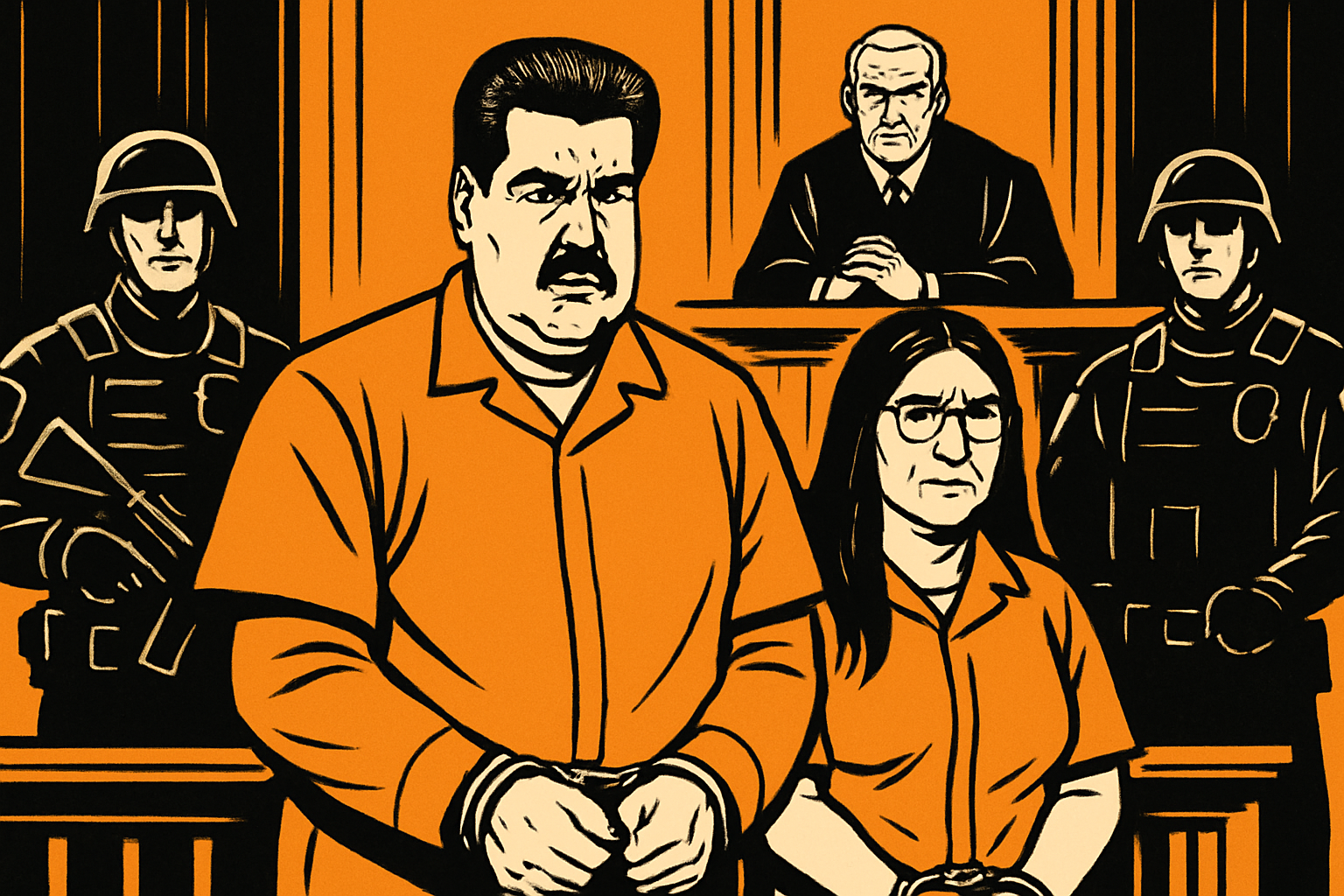 Nicolas Maduro et son épouse Cilia Flores, vêtus d'un uniforme carcéral bleu, ont été conduits devant la cour pour une audience brève mais nécessaire.